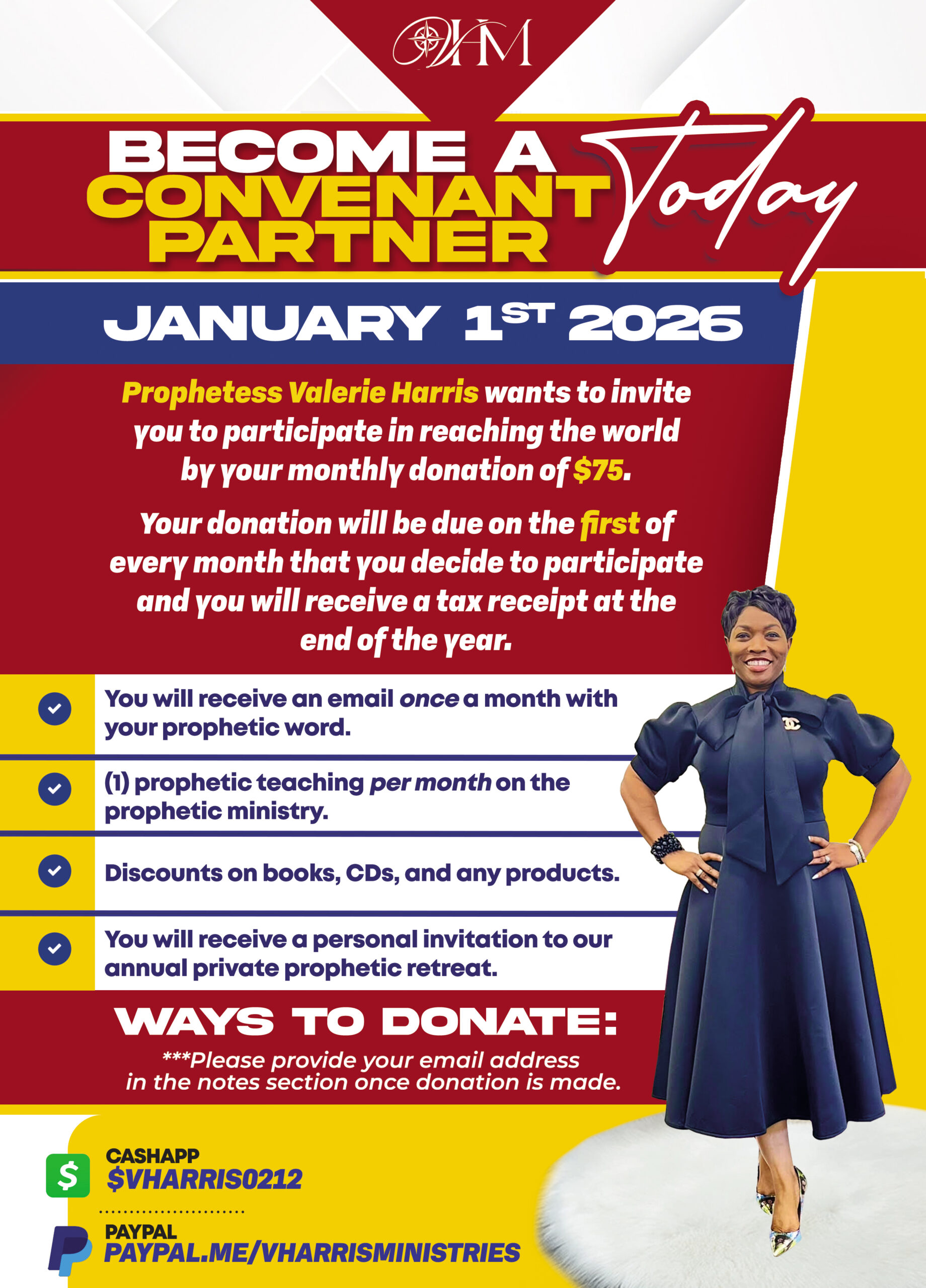 Your donation will be due on the FIRST of each month.